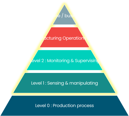 We offer services through layers 1 to 4 of the ISA 95 Pyramid of Technology and Business Processes.
